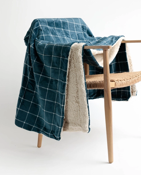 Dvostrana deka s različitim teksturama: mekša od kariranog uzorka i druga toplija, od krem ovčjeg runa.